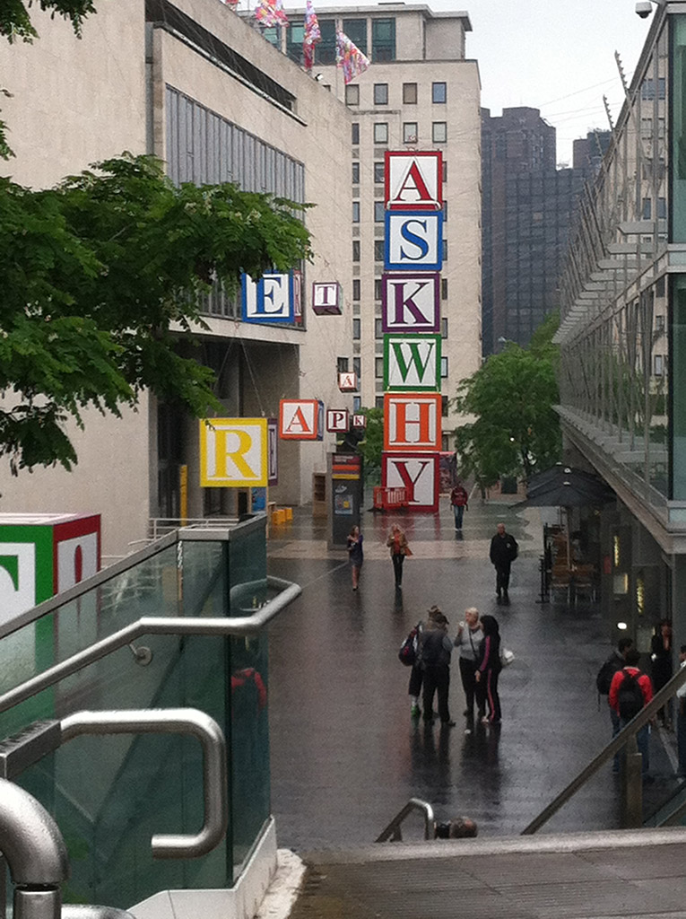 The vibrant blocks were placed around the Southbank Centre outdoor space in such a way that if viewed from the proper perspectives (i.e. two specific spots)